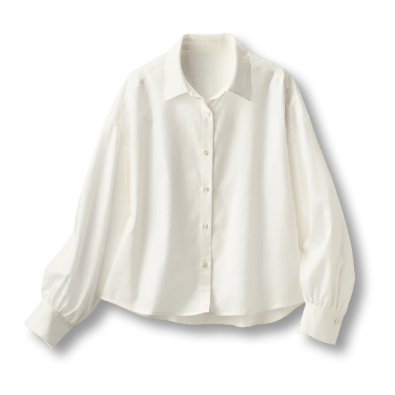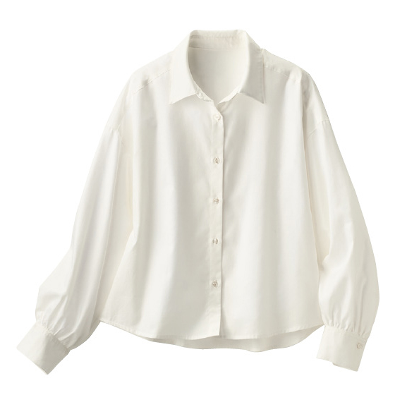 しっかりした織りなのに、柔らかで通気性もよいオックス生地。春に気持ちよく着られる素材に、防シワ機能をプラスした旬の短め丈シャツです。コットン100%でも洗濯ジワを抑えるので、洗って乾いたらそのまま着るだけ。はおり使いもできて今どきコーデにヘビロテです。
