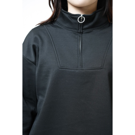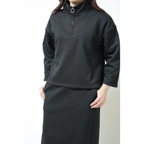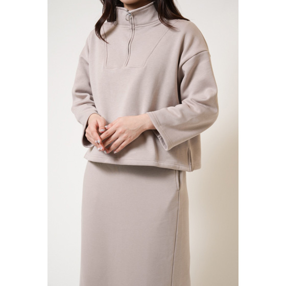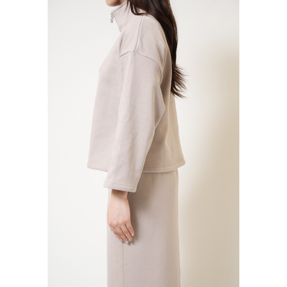 顔回りにニュアンスが作れる、旬のハーフジップデザイン。ほどよいゆとりでインナーを合わせやすく、寒暖差のある時季にも便利です。