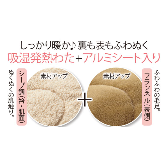 しっかり暖か♪裏も表もふわぬく。吸湿発熱わた+アルミシート入り。広げると大判毛布に!