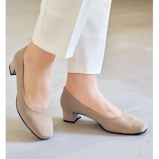 ヒールを低くしたことで安定感がアップ。シーンを選ばず、より履きやすくなりました。中敷は抗菌防臭などの機能付きでさわやか。
