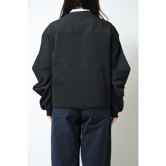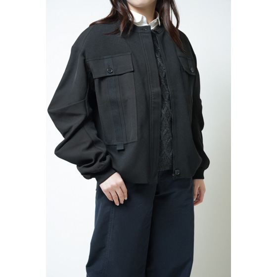 伸びたい部分にニット、シルエットをキープしたい部分に布帛。思い切りのよい切替で、機能美ともいえるデザイン性の高いブルゾンが誕生。