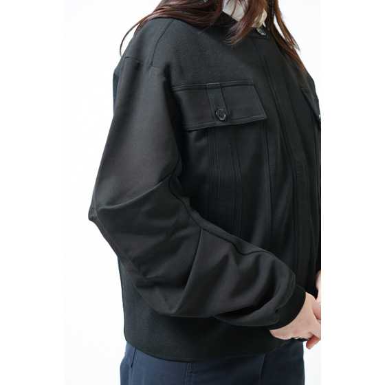 ニットを使用していることで着心地は抜群、布帛を使用していることで高級感があります。ブルゾンですが、上と下に1つずつ付いているボタンがあるので、ボタンを閉じるとチャックは隠れていかようにも着れるオシャレなデザインで、非常に気に入りました。