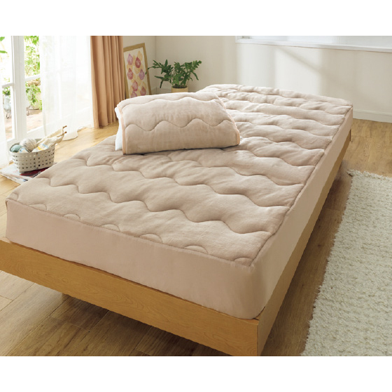 ●素材:表側=ポリエステル100%、裏側=ポリエステル100%、詰めもの=上層部/ポリエステル90%・アクリレート10%、下層部/ポリエステル100%(シングル=計0.42kg、セミダブル=計0.5kg、ダブル=計0.58kg、クイーン=計0.67kg、キング=計0.84kg)、マチ部分=ポリエステル94%・ポリウレタン6%