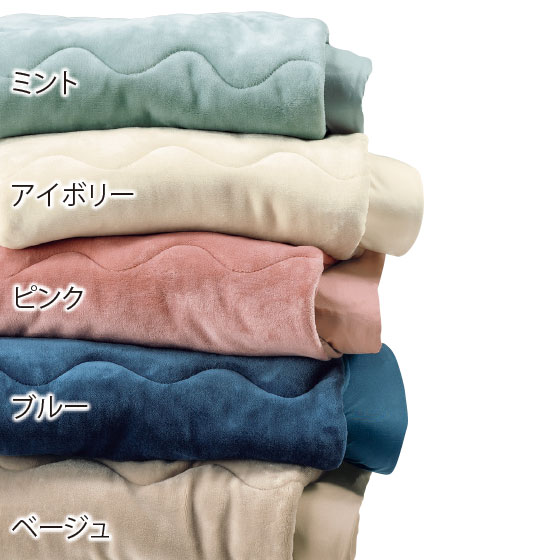 肌面はなめらかでふんわり暖かいフランネル。中材は吸放湿性がよく、汗などの水分を熱に変える吸湿発熱わたと、熱を蓄える蓄熱わたの2層構造にグレードアップ。