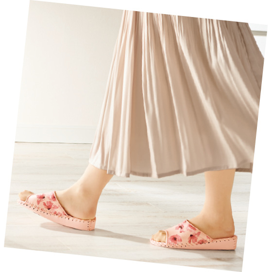 立体的に足裏にフィットする独自設計のインソールを採用。ソールのすべり止め部分に無機抗菌剤を練込加工。さらにかかと部分には着地の衝撃を和らげる衝撃吸収材も内蔵。