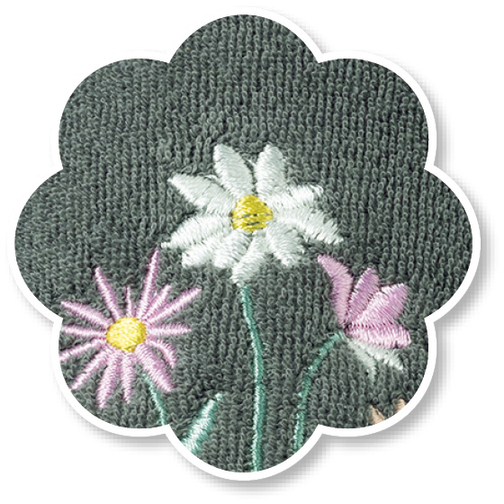 肌触りのよいソフトな綿パイル。繊細な花の刺繍がアクセントに。スエード調でパタパタ音がしにくい。