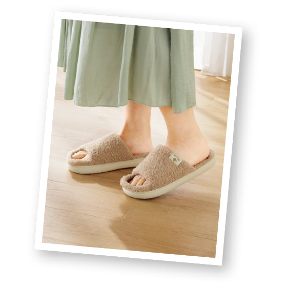 タオルに包まれるようなやさしい肌触り。ウレタンのほどよい弾力で快適な履き心地です。