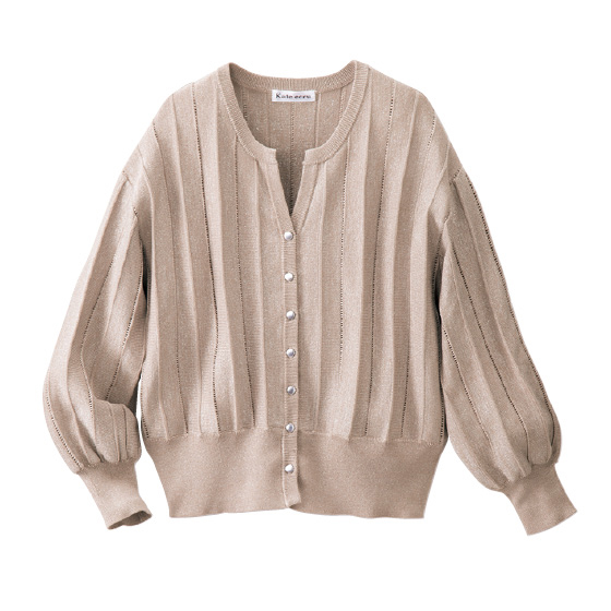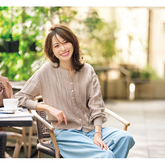 旬の立体的な編み柄に映え感のある春カーデ。身幅も袖もゆったりなのに、短め丈ですっきり見えてワイドボトムにもよく合います。毛玉になりにくく、乾燥機まで使えるイージーケア。