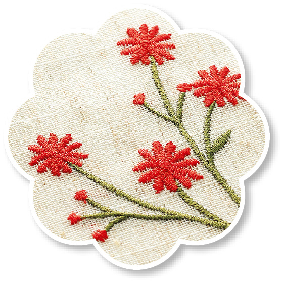 ●素材:ポリエステル・麻、刺繍糸=上糸/レーヨン100%、下糸/ポリエステル100%