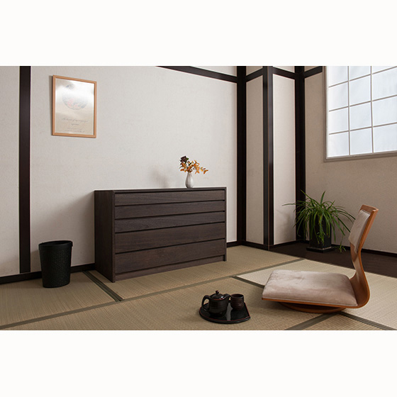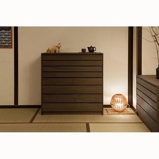 金物取っ手を排除。素材の良さを全面に生かしたモダンな桐タンス