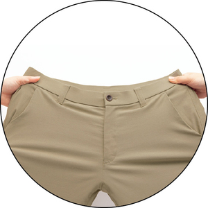 ウエストに伸縮性のあるインベルトを採用。おなか回りがゆったりラクで食後の窮屈感も軽減。