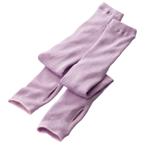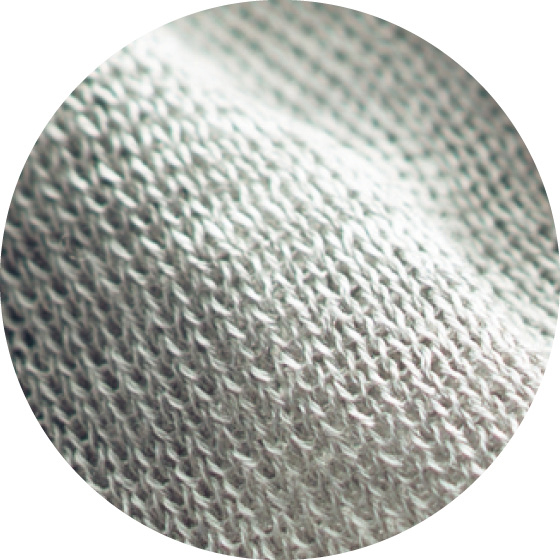 老舗メーカーがつくり上げたシルク素材の日本製生地。紫外線は遮りながらも風を通す薄さで快適に着用できます。伸縮性のある生地で、なめらかにフィット。薄手でムレにくく、縫い目もないので快適。