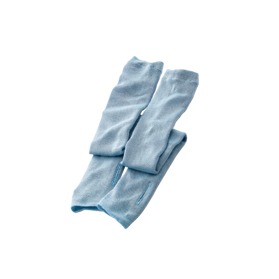 老舗メーカーがつくり上げたシルク素材の日本製生地。紫外線は遮りながらも風を通す薄さで快適に着用できます。伸縮性のある生地で、なめらかにフィット。薄手でムレにくく、縫い目もないので快適。