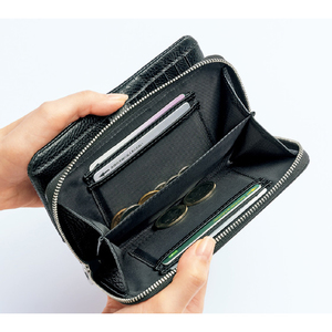 ●仕様:開閉=ホック&ラウンドファスナー式、ポケット=外部にオープン式1個、内部に札入れ2個・カード入れ16個・小銭入れ(内側に仕切り×1、カード入れ×4)1個付き