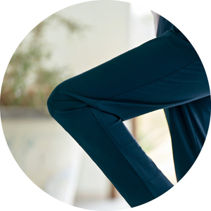 フロントにタックを入れてゆとりを持たせることで、ほどよい抜け感のあるシルエットに。どんなトップスにも合わせやすく、きれいに決まります。タテヨコによく伸びるニット素材ながら、ニットに見えない上品な生地感。肌離れがいいので、体のラインを拾いにくいのも嬉しい!※春夏秋、3シーズン着用できます。
