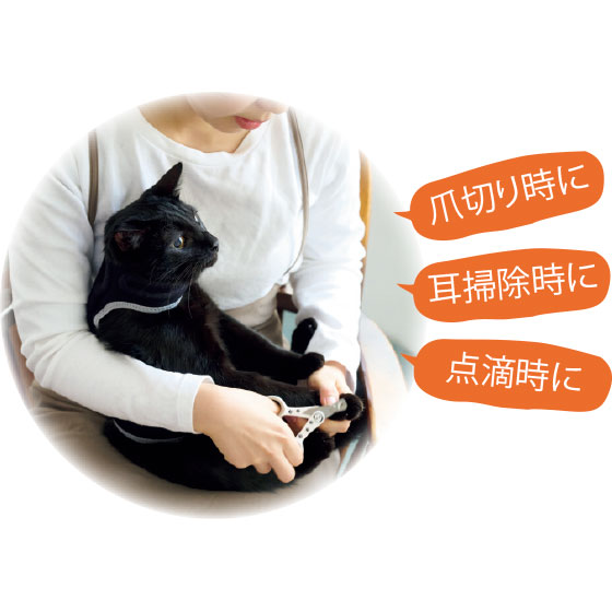 噛んで嫌がる猫ちゃんには首を包んで可動域を制限