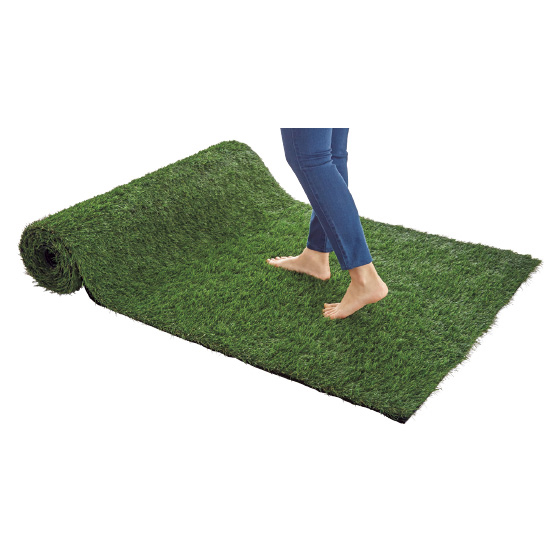 古くなったウッドデッキの上に敷いてバーベキューをしたり、お家時間を楽しんでいます。本物の芝生のようにフカフカで気持ち良いので裸足でペットと一緒に寝そべったり読書したり。雨の後の水捌けも良いです。二階のベランダ用にもう一枚注文しました。