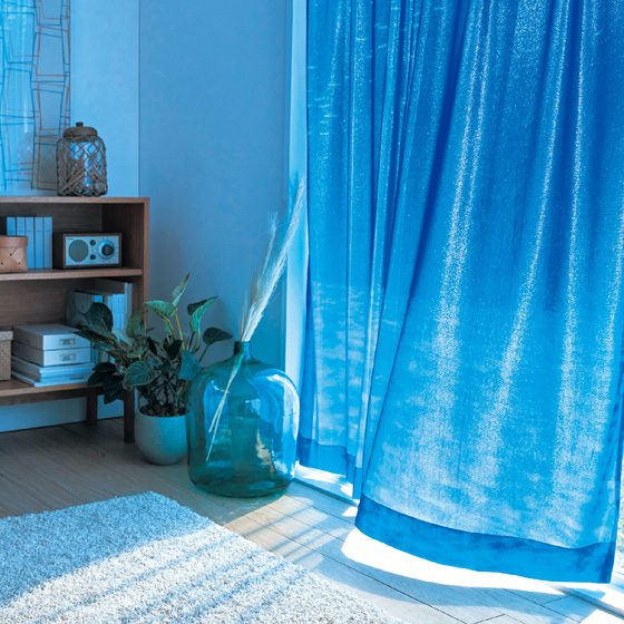 心安らぐ、海の中みたいな深いブルー。海の中の写真をそのままプリントしたレースカーテン。風に揺れるとまるで海の中にいるような心地良さに包まれます。