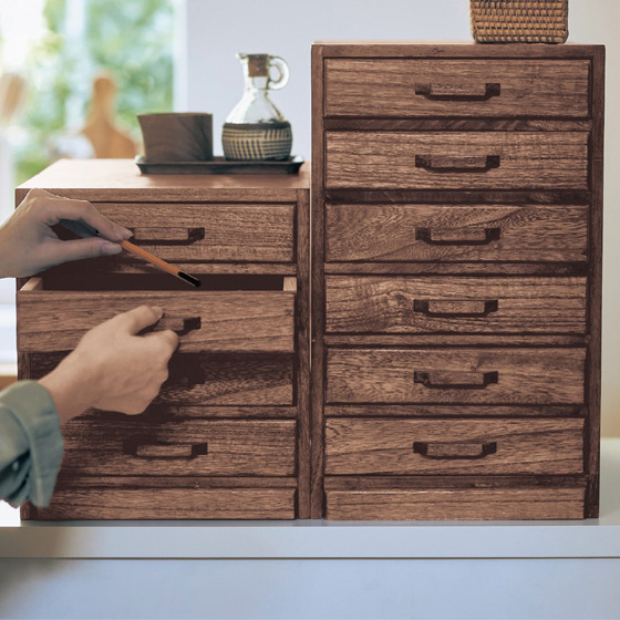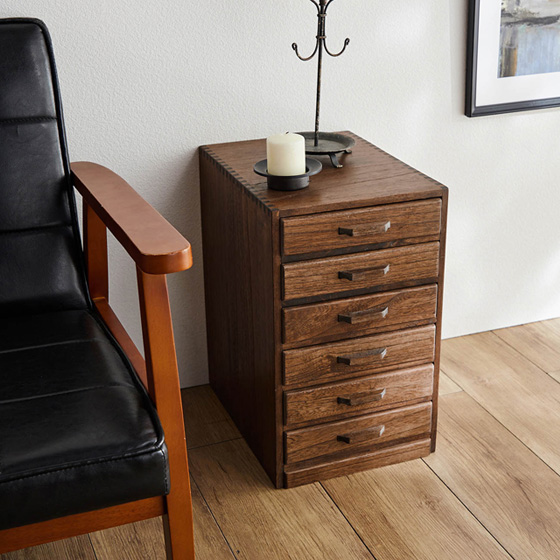 むしろ、この小ささが使いやすい!棚やデスクの上、カウンターの上などに置けるチェスト。しまい込むと忘れてしまう書類や郵便物などの収納場所に。リビングはもちろん、玄関の下駄箱の上、デスクの上、カウンターの上など、置き場所を選ばない使いやすいサイズ感。天然木桐材にオイルステイン仕上げを施したレトロな雰囲気だから、インテリアのアクセントとしても!