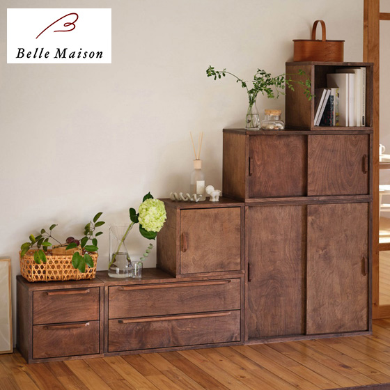 必要な収納を選んで組み合わせられるユニット式なので、ご自宅のスペースや用途にあわせて使うことができます。組み替えも自在。雑誌や書類からこまごましたものまで、すっきり収納可能。素材はオイルステイン仕上げで、古家具風の見た目ながら質感の良い仕上げになっています。スタッキング設置時用にフェルトの滑り止めと金具付き。