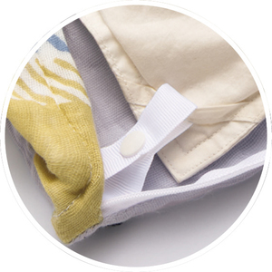 ●肌掛け・掛けカバーに8カ所スナップボタン付き