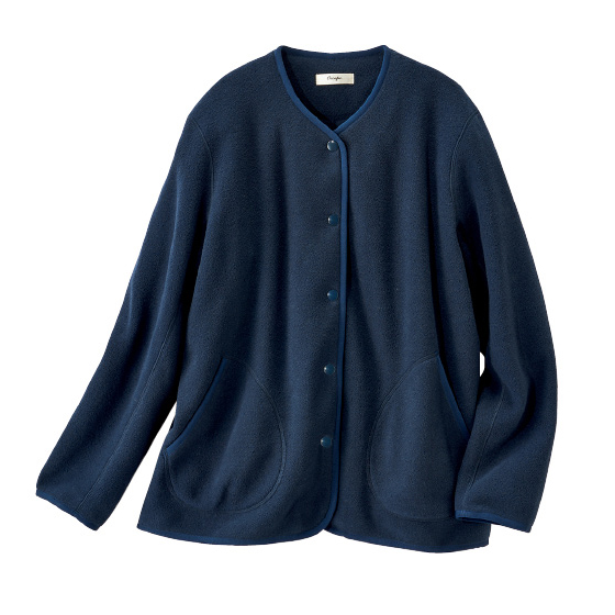 ふんわり軽いフリース生地。ゆるシルエットでニットの上にも重ねやすく、パイピングとステッチ使いでさりげなく洒落見え。