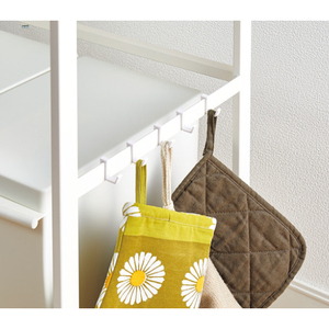 サイドに着脱可能なフック5個付きで小物掛けに便利。
