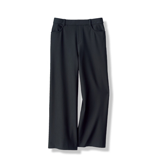 水が染み込みにくい素材。すっきり見えのワイドクロプト。