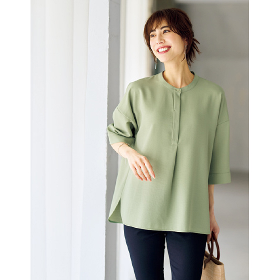 二の腕も体の線も上手にカバー。ゆるっときれい映えブラウス。