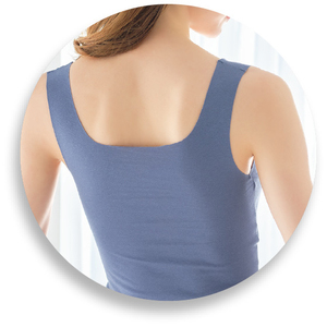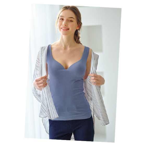 心地よく伸縮してボディラインの曲線にやわらかくフィットします。風を通しやすい一体型カップで、サイドに流れがちなバストを寄せ上げます。