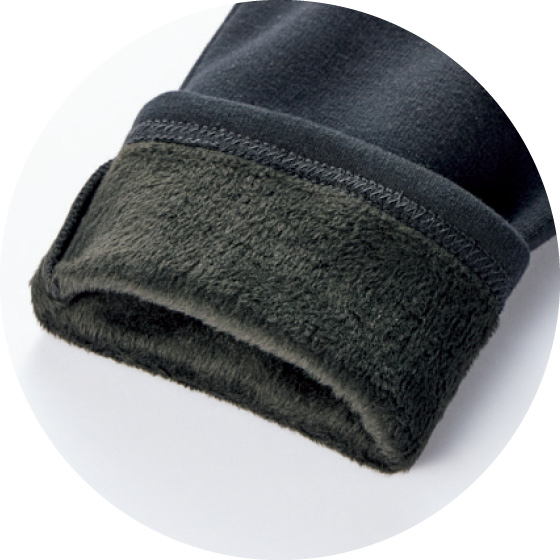 裏は暖かなシャギー素材。ストレッチで動きやすく、活発な子にもおすすめ。
