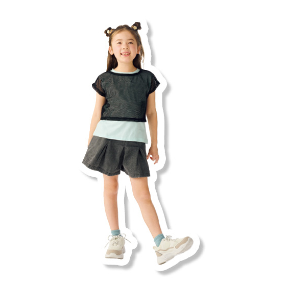 ●素材:ワンピース=本体/綿100%(ニット、天竺)、リブ部分/綿95%・ポリウレタン5%、Tシャツ=本体/ポリエステル100%(ニット、メッシュ)、リブ部分/綿95%・ポリウレタン5%