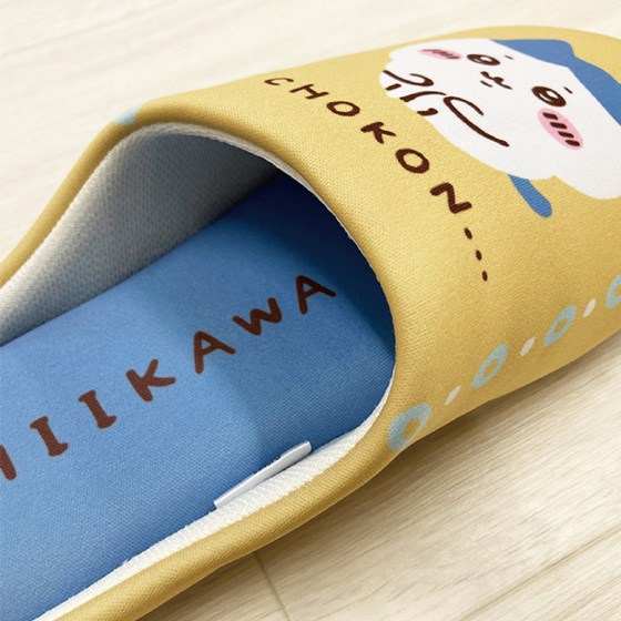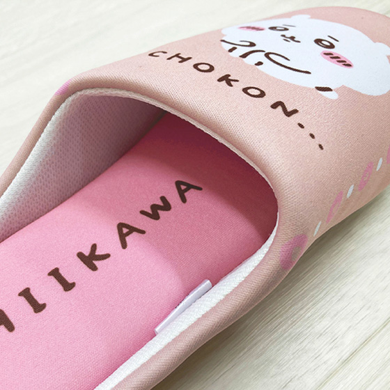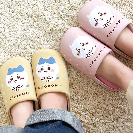 生活に馴染むやさしい色合いとちいかわ・ハチワレがかわいいルームシューズ。クッション性のある中敷と、軽くて歩きやすい設計。パタパタ音がしにくく生活に寄り添います。
