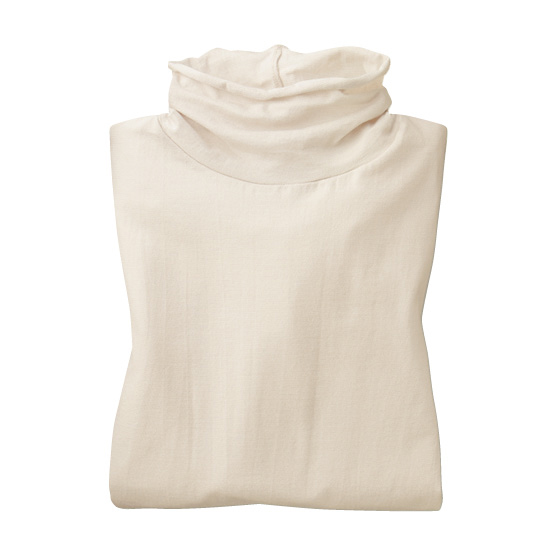 やわらかな綿コーマ糸を交えて編み立ててあるので肌にやわらかフィット。お出かけやお部屋でもサッと着るだけで、油断しがちな首、胸元の日焼け対策に。