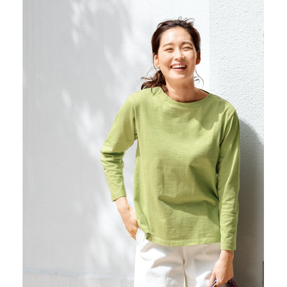 生地に凹凸感があり、肌心地爽やか。程よい厚みの綿100%。
