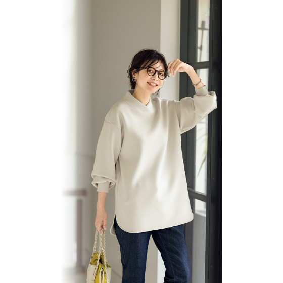 フードなしですっきり大人。きれい見えパーカー風。