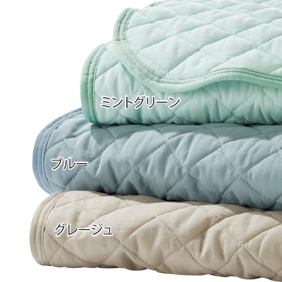 ●裏4隅にズレ防止のゴムベルト付き(敷きパッド)、ゴムベルト2本付き(枕パッド)