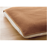 全ウールの中でも生産量がわずかなフタコブラクダの毛。その中でも特に毛足が長くやわらかい部分を使用しています。昼夜の寒暖差が激しい環境で生きるラクダの毛は、保温力が高く、吸湿・発散性にも優れているので、湿気がこもりにくいのも特長。糸の本数を増やして丈夫に仕上げました。寝汗が気になったら、ご家庭の洗濯機で洗って気持ちよく使えます。