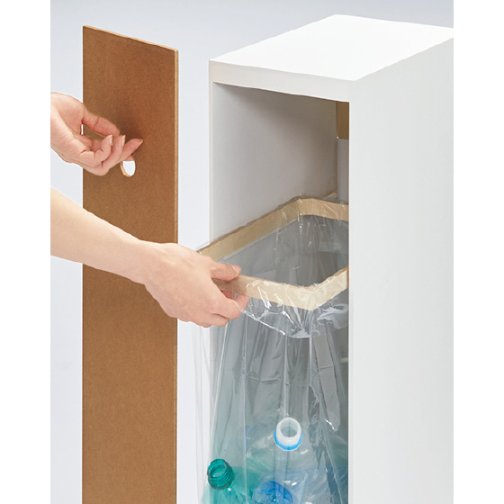 背面の板を外して、枠にごみ袋をセットするので、袋が外から見えません。