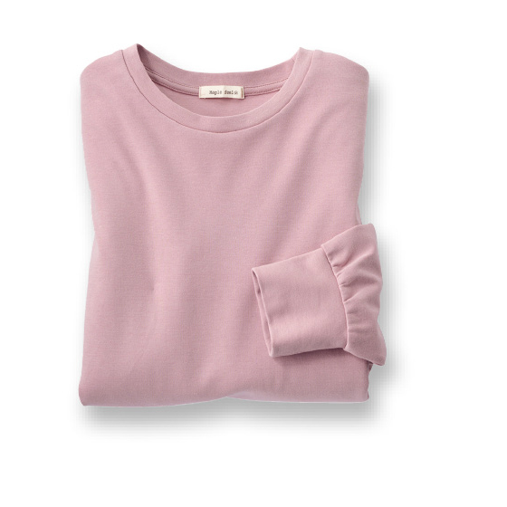 ほどよく肉厚な生地で体のラインを拾いにくく、1枚ではもちろん、冬は重ね着にも重宝。どんなボトムスにも合わせやすいシンプルデザインです。