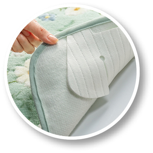 日本製ならではの繊細なプリントで柄を美しく表現。立体フィット縫製と吸着シートで、O・U型にも洗浄型にもOK!ペーパーホルダーカバーは可憐な刺繍が素敵なアクセントに。