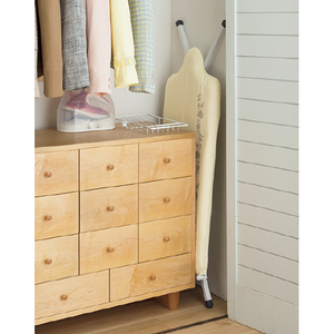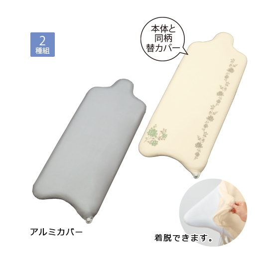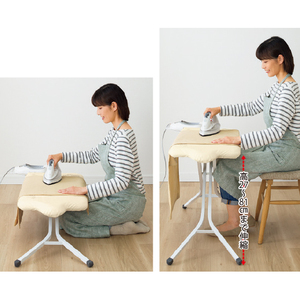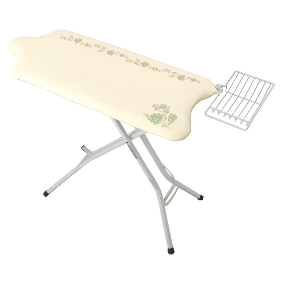 ●材質:天板=スチールメッシュ(粉体塗装)、脚部=スチール(粉体塗装)、クッション材=ポリエステル100%、張地=綿100%、アイロン置き台=スチール(粉体塗装)、替カバー=柄付きカバー/綿、アルミカバー/綿(アルミコート)