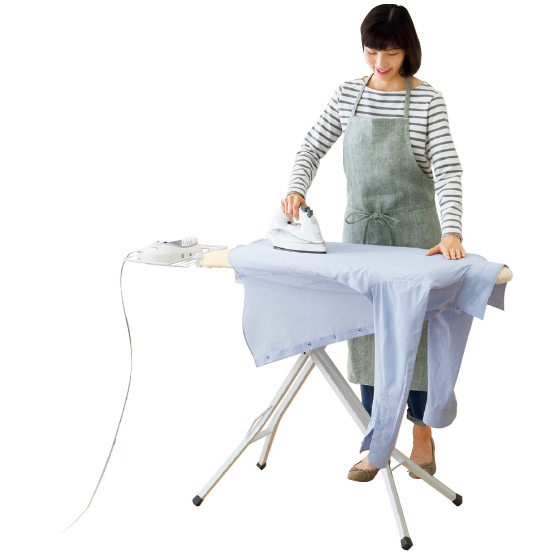 アイロンがけが面倒と感じる一因は、かける位置を何度もずらしてはプレスする手間の多さ。油断すると済んだところがくしゃっとシワになったり、うまくいかないのもストレスです。山崎実業のスタンド式アイロン台は、立っても、座っても、ラクな姿勢で使えるように高さを15段階に調節できます。広々とした面積で大きなシャツの背中も一度にかけられ家事の時間を短縮します。さらに、衣類に沿う人体形状でかけやすく、手早くきれいな仕上がりになります。アイロン嫌いな方にこそおすすめしたい一台です。