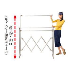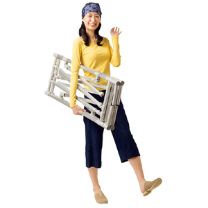 洗濯物をたくさん干せる物干しがほしいけど、使わないとき邪魔になりそうで…。そんな方におすすめしたいのが、こちら。ふだんは薄くてコンパクト。使用時は洗濯物の量に応じて伸縮し、高さも幅もグーンと大きく広がります。ジョイントやネジを目立たなくしたデザインは、デリケートな衣類も引っ掛けにくく、見た目もスッキリ。アルミボディなので、女性もラクに運べるうれしい軽さながら、強度も確保しています。