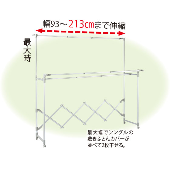 竿を水平にすれば乾きにくい敷きパッドなどを干すのにも便利です。
