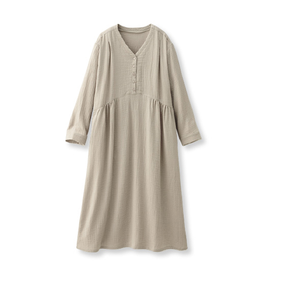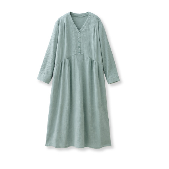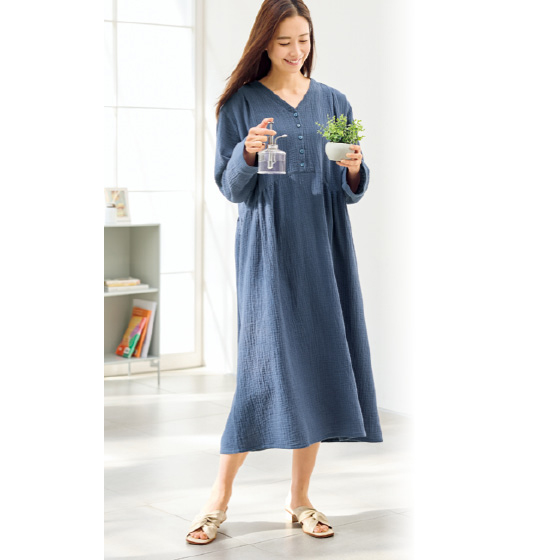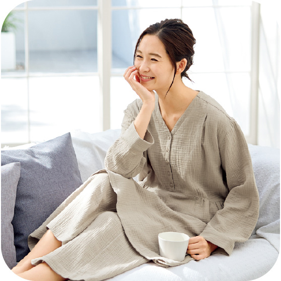 2重ガーゼでふわり、くしゅっとした表面で肌さらり。ゆるりとくつろげるシルエットに仕立てました。