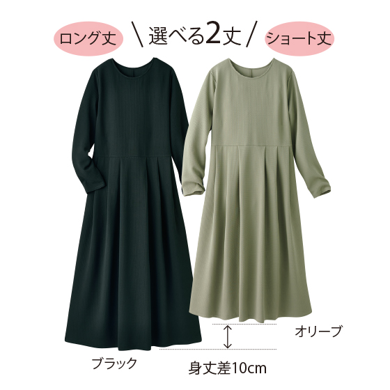 キレイなのにお手入れ簡単なタフ素材。着心地ラク!美ドレープで体形カバーも。