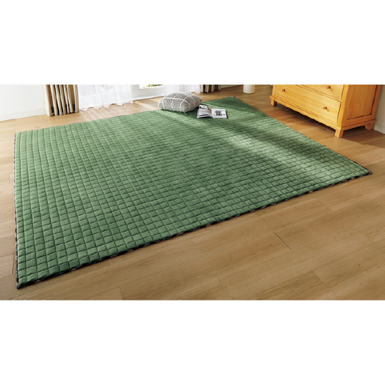 寝そべりたくなるキルトラグ。表地はふわふわあったかフランネル。ウレタン&アルミシートで、もちもちの弾力性。色によって縁の色が異なります。