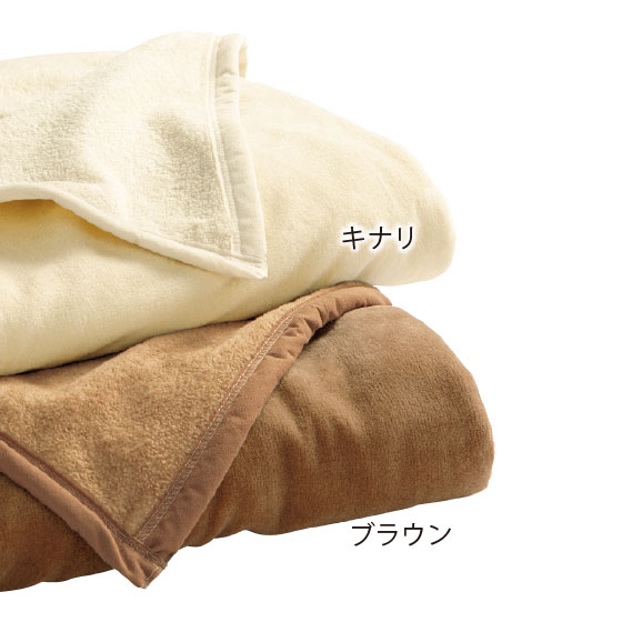 毛羽部は綿100%のマイヤー素材。毛先を無撚糸状にすることでふわふわの肌触りに。吸湿発熱機能で湿気を熱に変えて暖か。