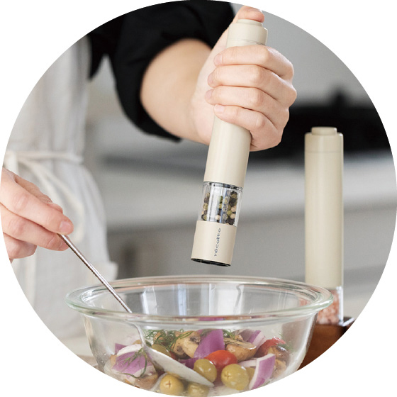 ●材質:本体・蓋=ABS樹脂・ステンレス、ミル=セラミック、コンテナ=トライタン、スタンド=天然木(ゴム)・マグネット
